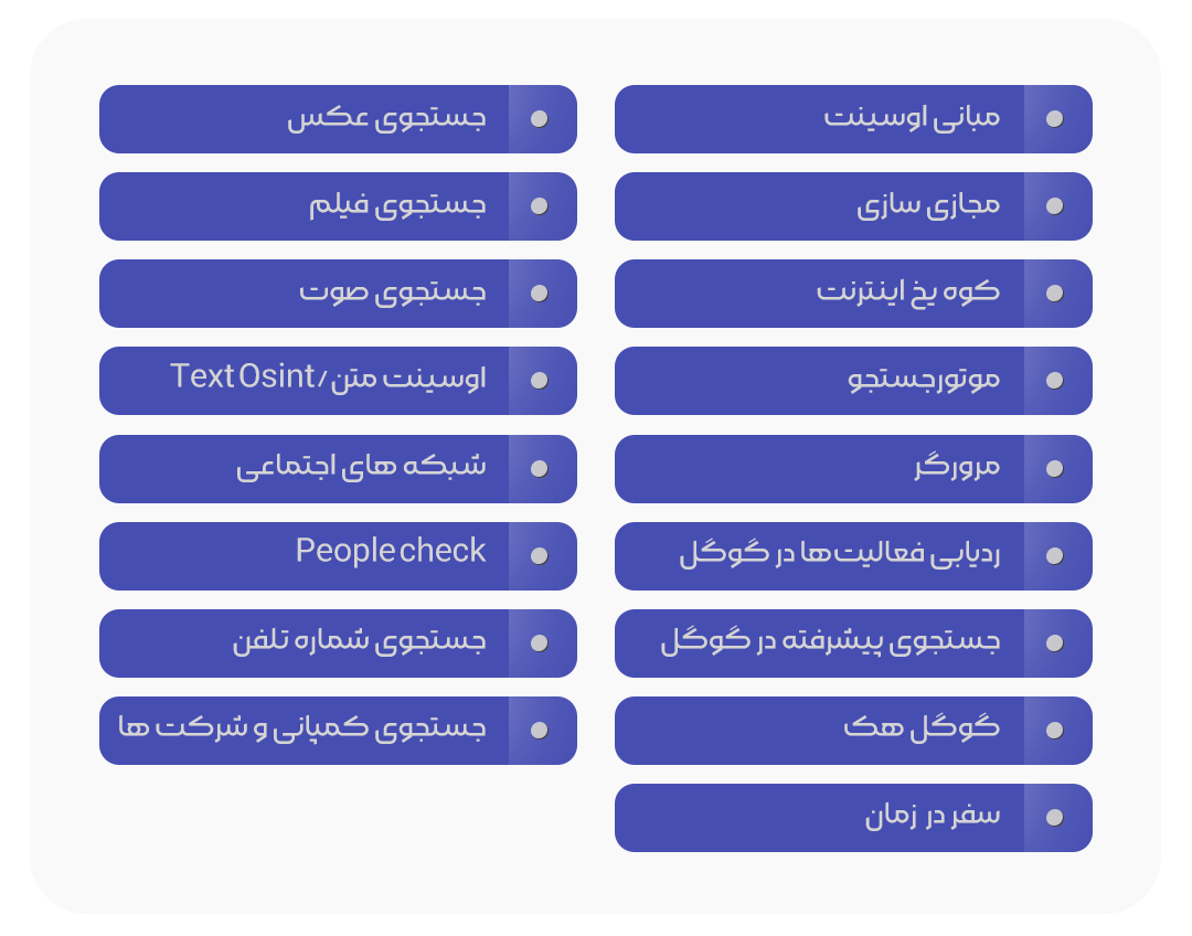 در پایان دوره، شما با مفاهیم پایه و کاربردهای عملی هوش منبع باز آشنا می‌شوید و توانایی جستجو، تحلیل و ارزیابی اطلاعات عمومی در فضای وب را به‌دست می‌آورید. مهارت‌هایی که در طول دوره کسب می‌کنید شامل موارد زیر است: جستجوی پیشرفته در گوگل و موتورهای تخصصی برای یافتن داده‌های دقیق‌تر تحلیل و بررسی تصاویر، ویدیوها و فایل‌های صوتی جهت کشف منبع و زمان تولید ردیابی و بررسی اکانت‌ها در شبکه‌های اجتماعی و تشخیص حساب‌های فیک یا واقعی شناسایی و مدیریت ردپای دیجیتال شخصی به‌منظور افزایش امنیت آنلاین آشنایی با ابزارها و وب‌سایت‌های کلیدی اوسینت برای جمع‌آوری اطلاعات عمومی درک اصول اخلاقی و مرزهای قانونی در تحقیقات OSINT در پایان این دوره، شما به سطحی از مهارت می‌رسید که بتوانید در پروژه‌های ساده‌ی تحلیل اطلاعات، fact-checking و بررسی امنیت شخصی یا سازمانی فعالیت مؤثر داشته باشید.